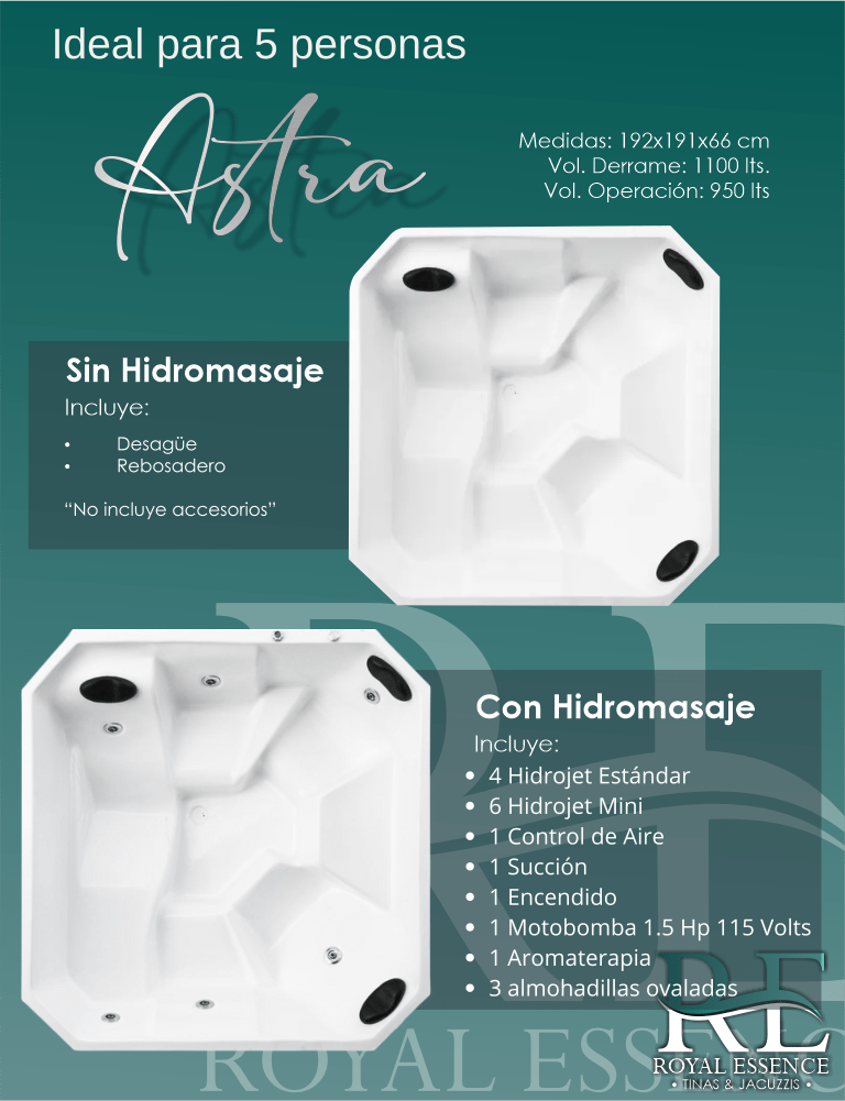 Modelo Astra con Hidromasaje – 192x191x66cm