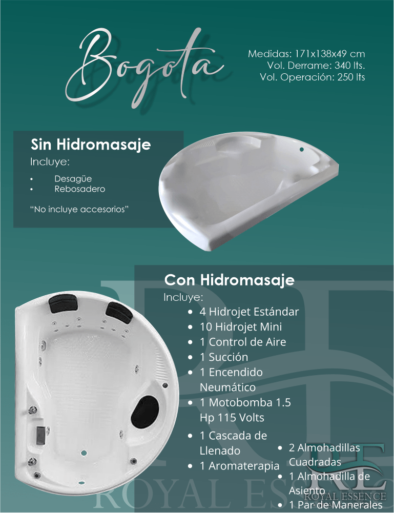 Modelo Bogotá con Hidromasaje – 171x138x49cm