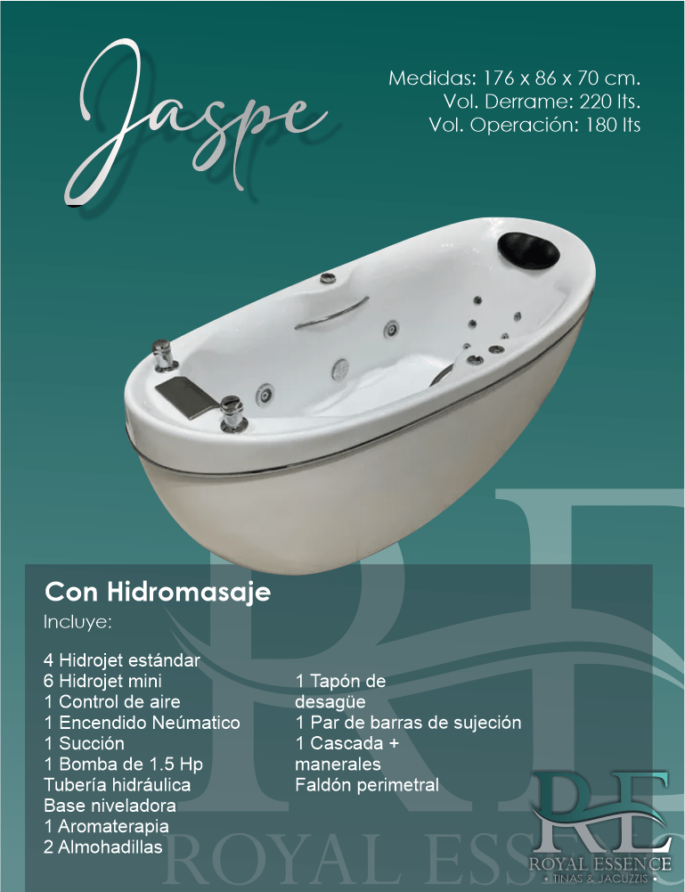 Modelo Jaspe con Hidromasaje – 176x86x70cm