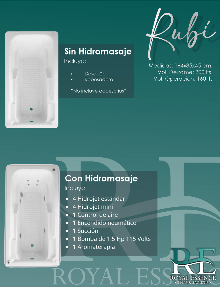 Modelo Rubí con Hidromasaje – 164x85x45cm